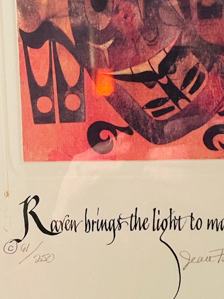 This photo (print) hangs in our bathroom. It is nothing special other than it came from my wife’s mother after she passed.