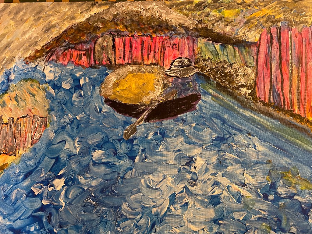 Most of this free form clean out the brush painting is done with my grandson’s finger paints. Have fun.