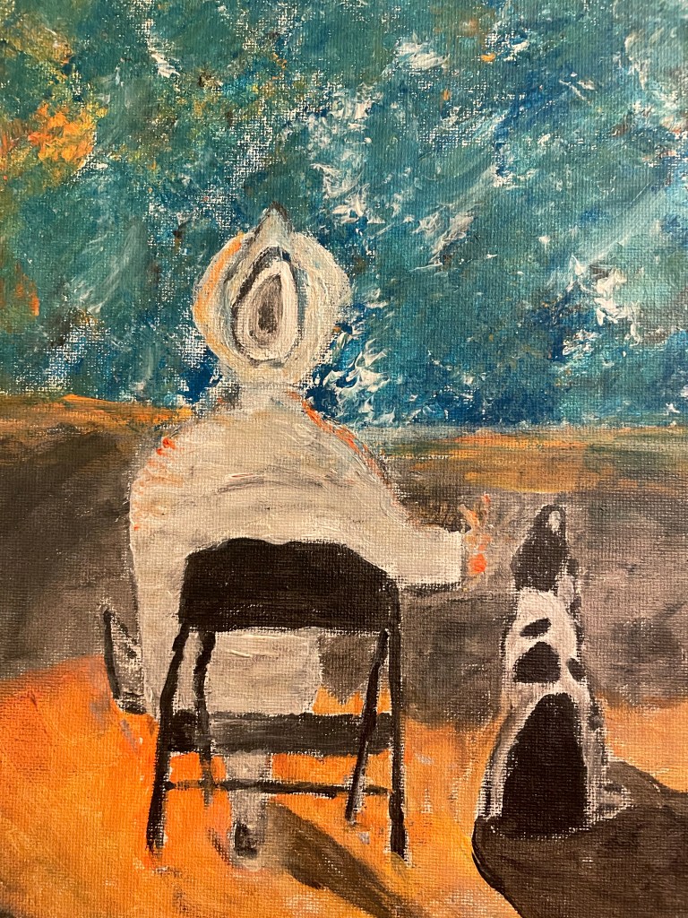 I don’t know how the dog, Jack Russell, sat long enough to paint this as they experience differently through the their senses.