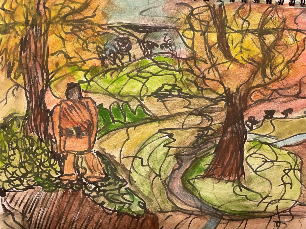 I was thinking about this as I took a side trail through a field near my house. Many years later we play scenes such as this, over and over again and think what could have been. We think about, if I had the experience I have now with a situation that took place many years ago. Life simply doesn’t work that way. The wind picked up and a few dry leaves danced in the wind.