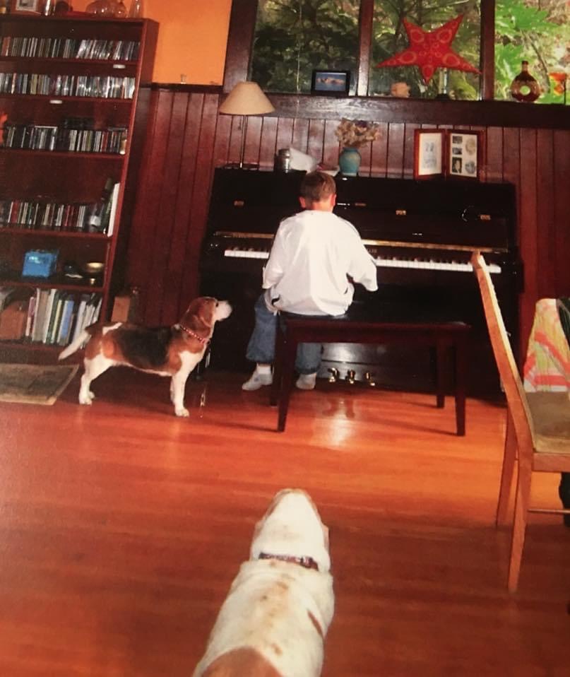 Little splashes of life are like that. This picture is one of my all time favorites. Max sat and played the piano because he enjoyed playing the piano. It intrigued him and made him happy at that point in time. Bismarck, the basset hound was not exactly a deep thinker. Lucy, never stayed out of trouble for long. Still they took the time to take in the simple beauty of Max and his concerto. Evidently, I walked by with a camera in hand.