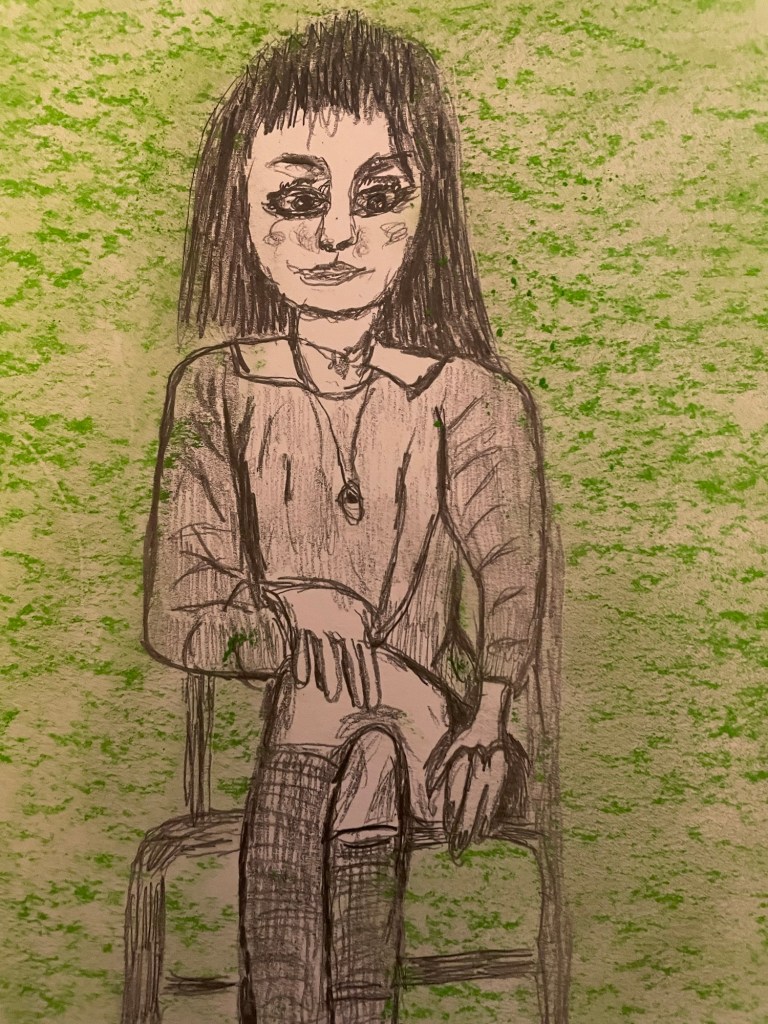 Quick sketch of a woman I don’t know. She is visibly distraught at what her country has become.