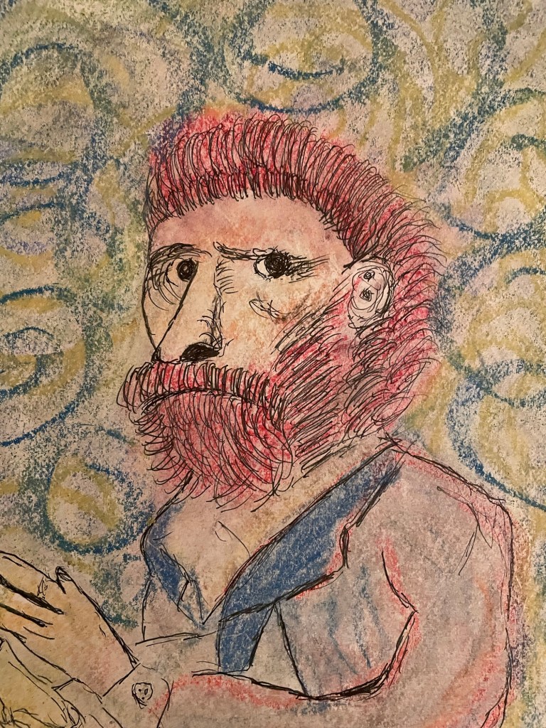 Vincent goes to the prom. This is a fun quick drawing of an AI generated painting sold on Etsy.