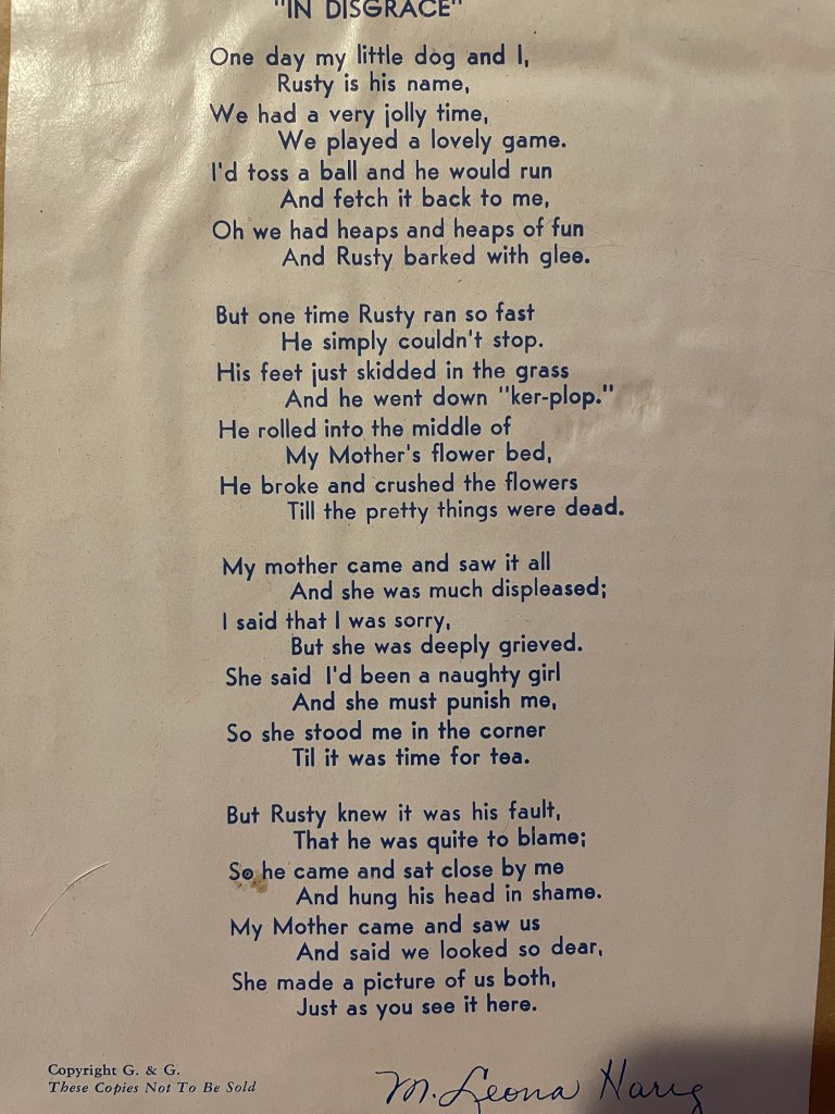 I was moving the bed in the guest room. I believe the poem was one saved by my mother in law.