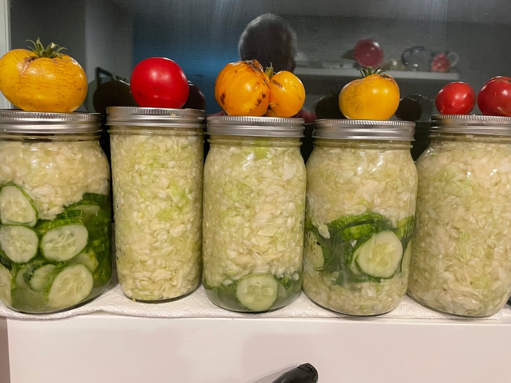 Yesterday I had,from the garden, some cucumber salad, fresh tomato soup with a zucchini base and an ear of corn