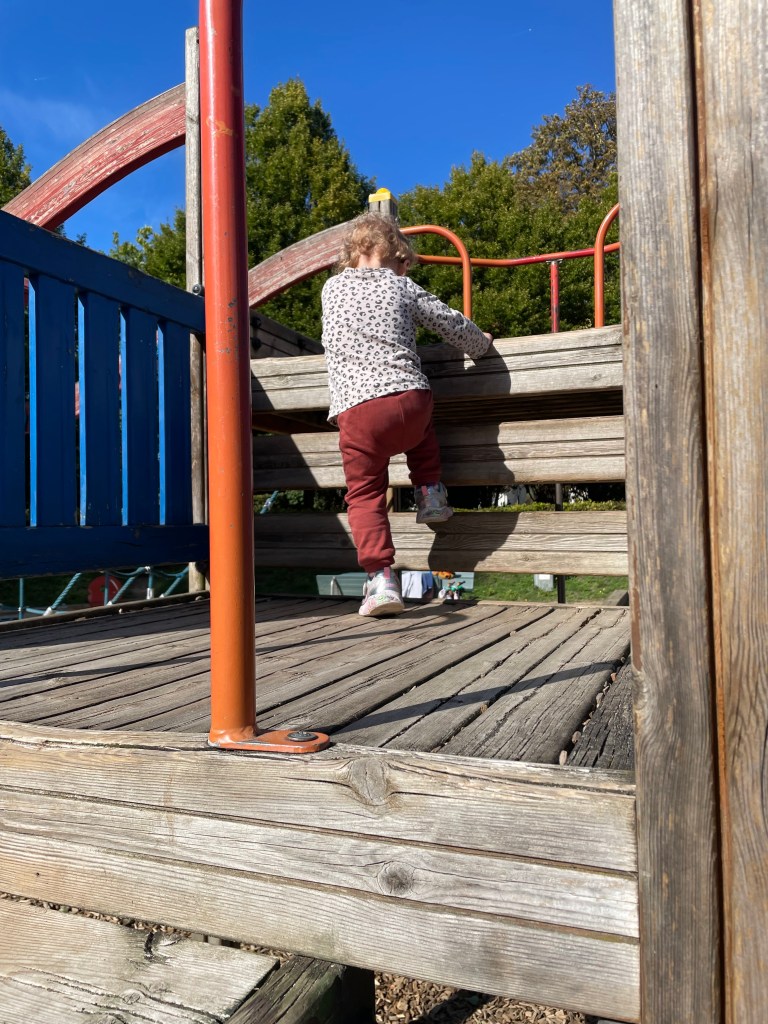 Yesterday I took our granddaughter to the playground in Mainz. There was not a single father at the park and I was not attuned to the rules of etiquette. On top of that I tried to keep it all in German. That was a challenge, but I kept it simple and for the most part I held my own. Yafa did the sliding board often and liked playing on the trails that surrounded the park. She also enjoyed turning on the sprinkler.