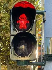 I was walking down a street toward the apartment I am staying in for a few days. I felt a little bit confident walking from the apartment to my daughter’s place a kilometer away. Street corners in Germany follow a strict rule of order. I recently was reprimanded for crossing on the red with no car within two blocks. Wait for the Mainz man to tell you to go. He is the cute little automated guy on the streetlight.