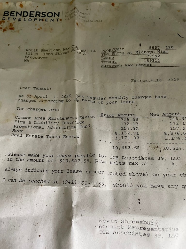 I found in an alley an invoice to a hair waxing company for their monthly rent.